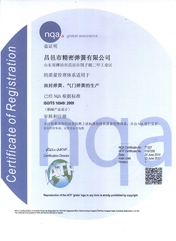 Changyi Precision Spring Co.,Ltd has passed the ISO14001 Environmental management system certification in 2015.